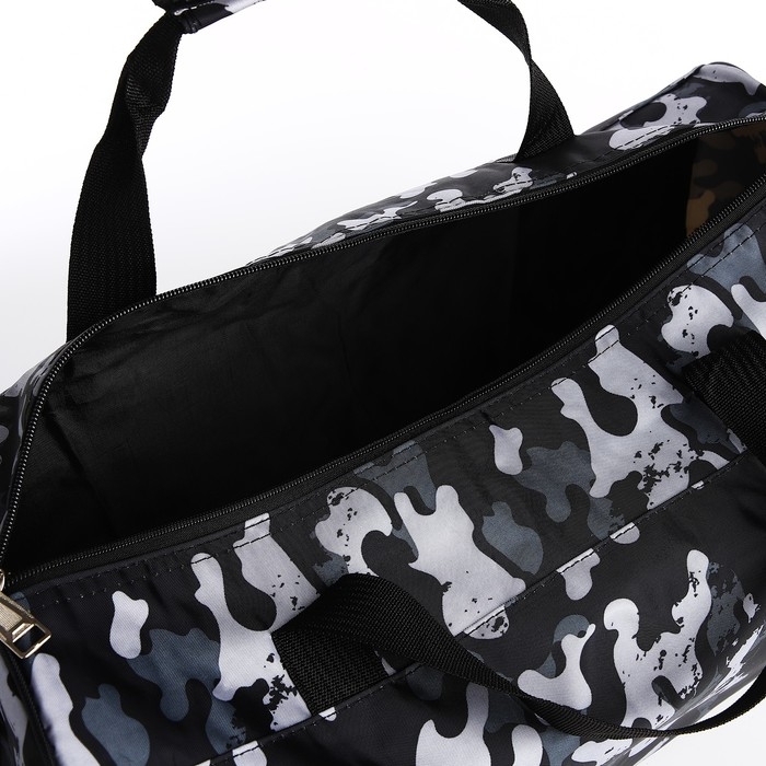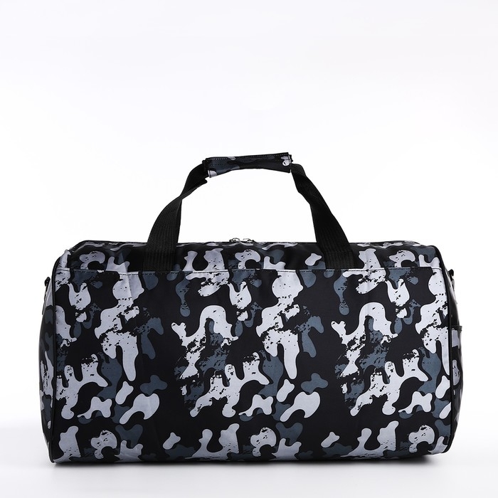 Сумка дорожная на молнии, наружный карман, длинный ремень, цвет серый/чёрный