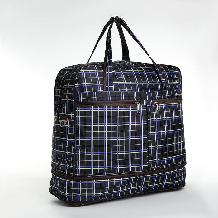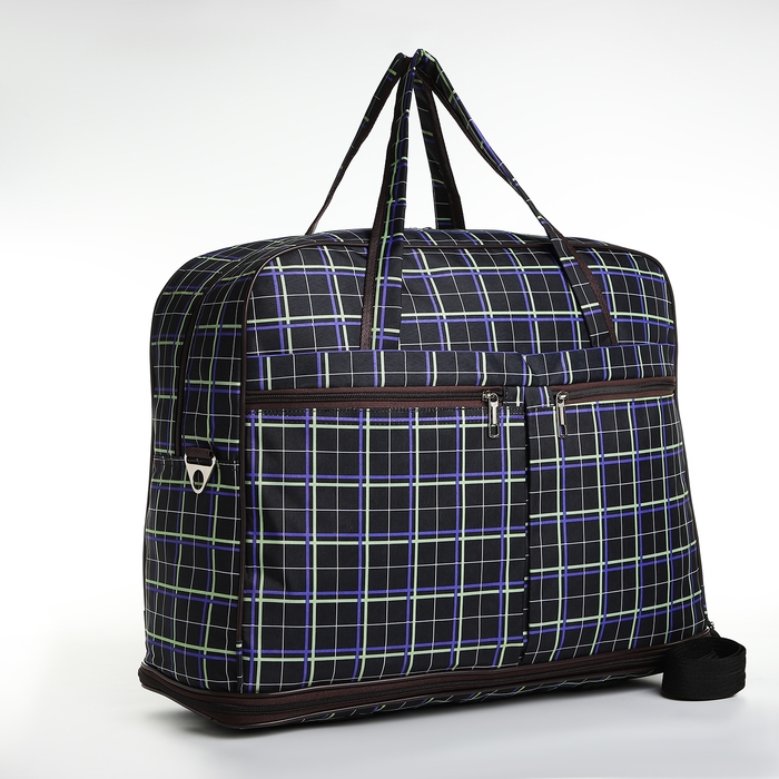 Сумка дорожная на молнии, с увеличением, 3 наружных кармана, длинный ремень цвет чёрный