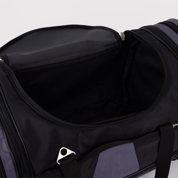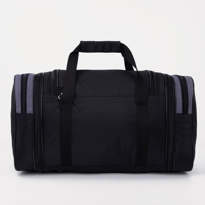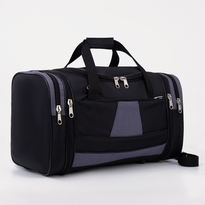 Сумка дорожная на молнии, с увеличением, 3 наружных кармана, длинный ремень, цвет чёрный/серый
