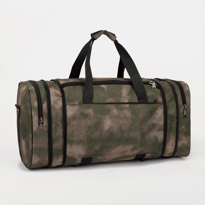 Сумка дорожная на молнии, с увеличением, 3 наружных кармана, длинный ремень, цвет хаки/камуфляж