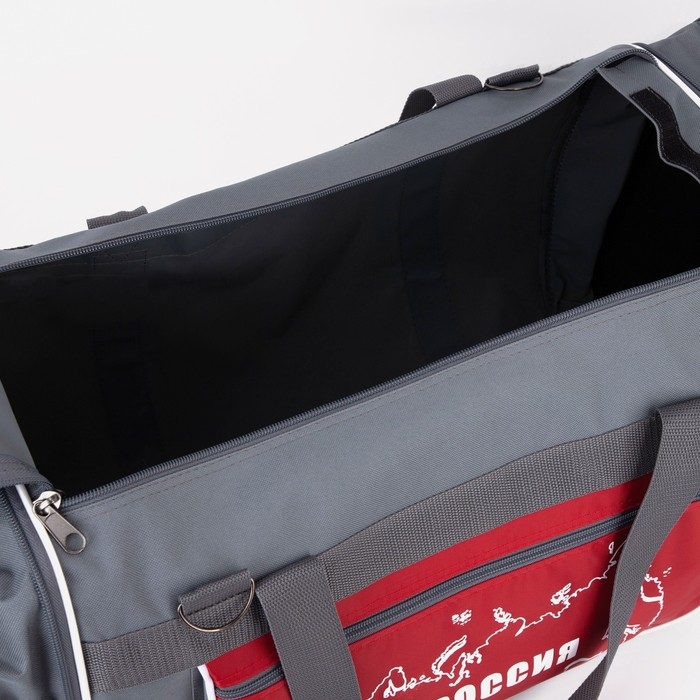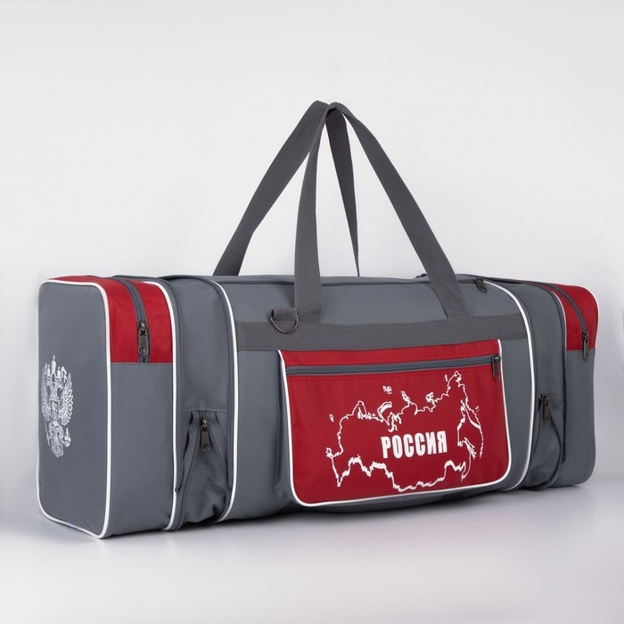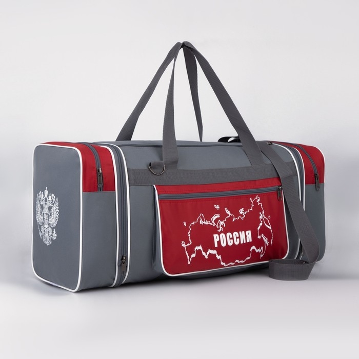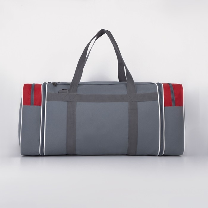 Сумка дорожная на молнии, с увеличением, 3 наружных кармана, длинный ремень, цвет серый/красный