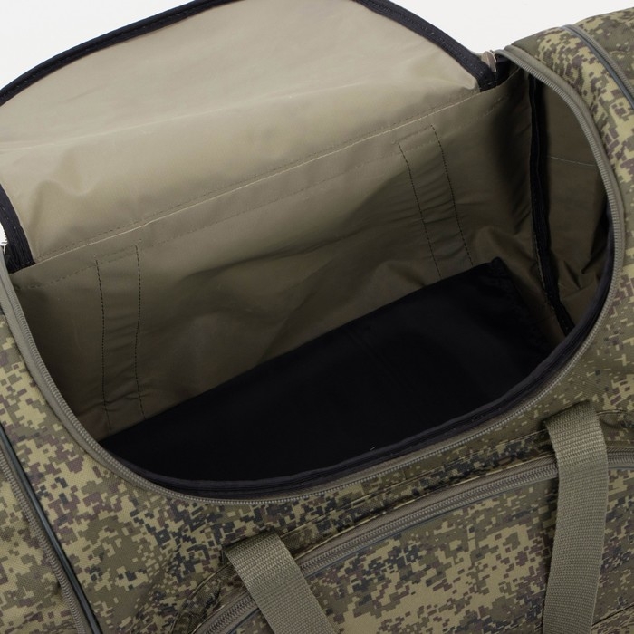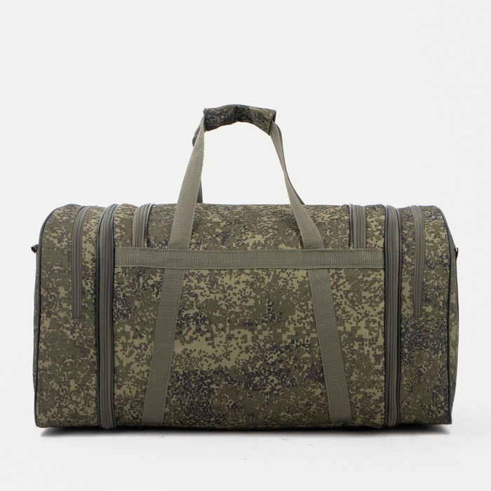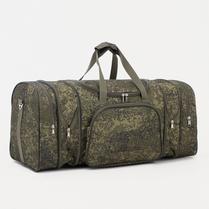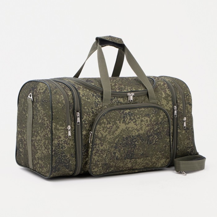 Сумка дорожная на молнии, с увеличением, 3 наружных кармана, длинный ремень, цвет зелёный/камуфляж