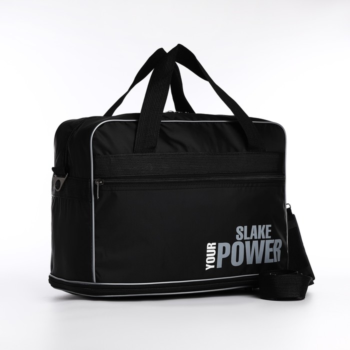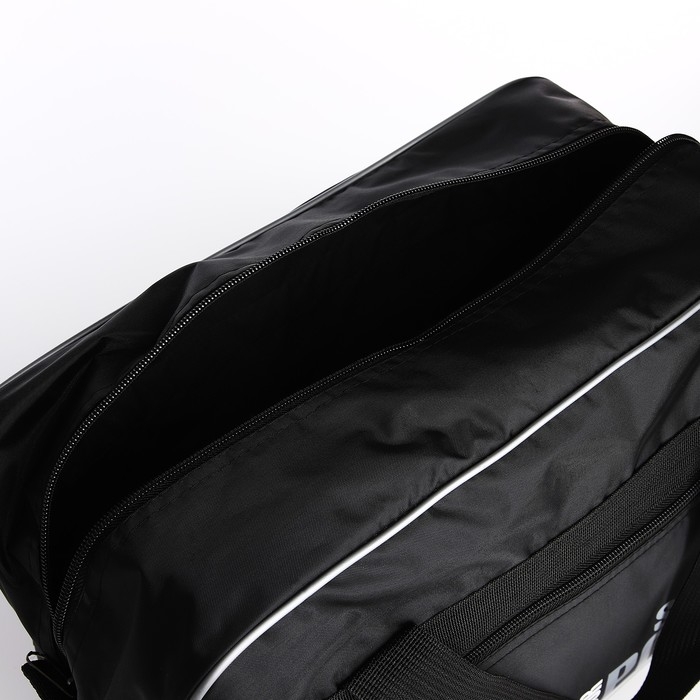 Сумка дорожная на молнии, с увеличением, наружный карман, длинный ремень, цвет чёрный