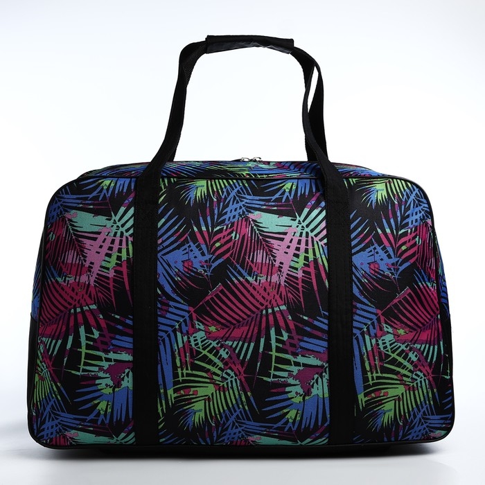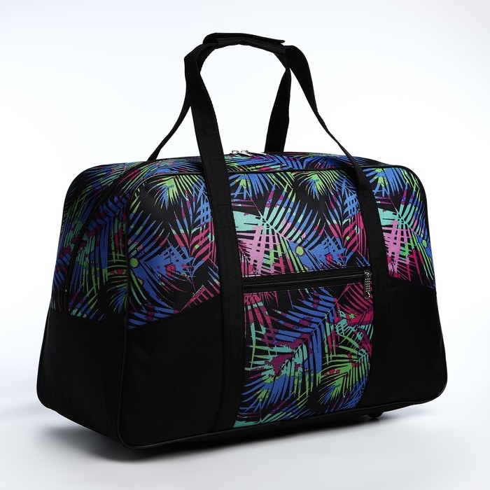 Сумка дорожная женская на молнии, 3 наружных кармана, цвет чёрный/разноцветный