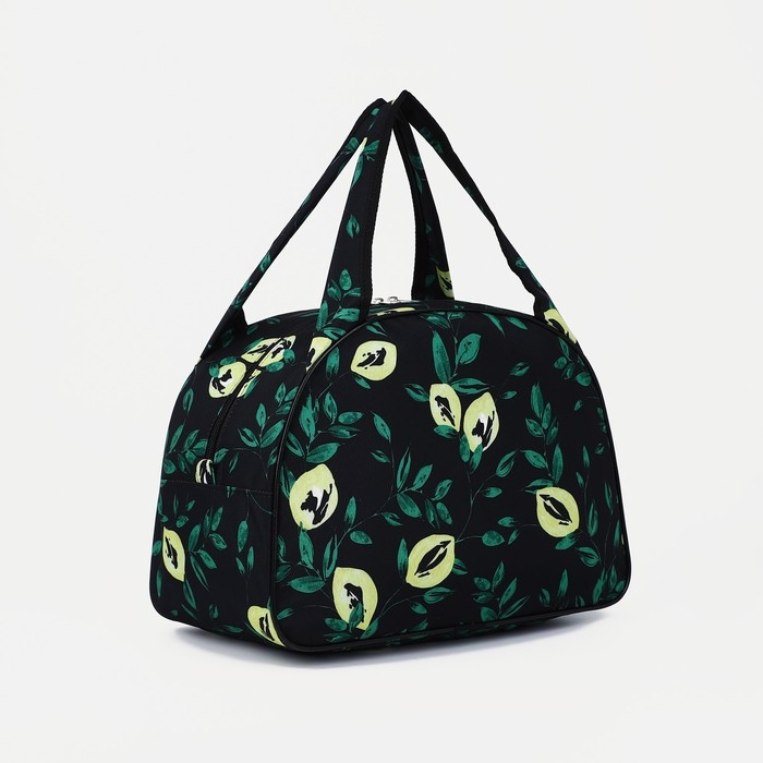 Сумка дорожная женская на молнии, цвет чёрный/зелёный