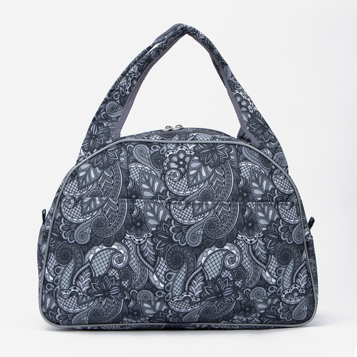 Сумка дорожная на молнии, 3 наружных кармана, длинный ремень, цвет серый