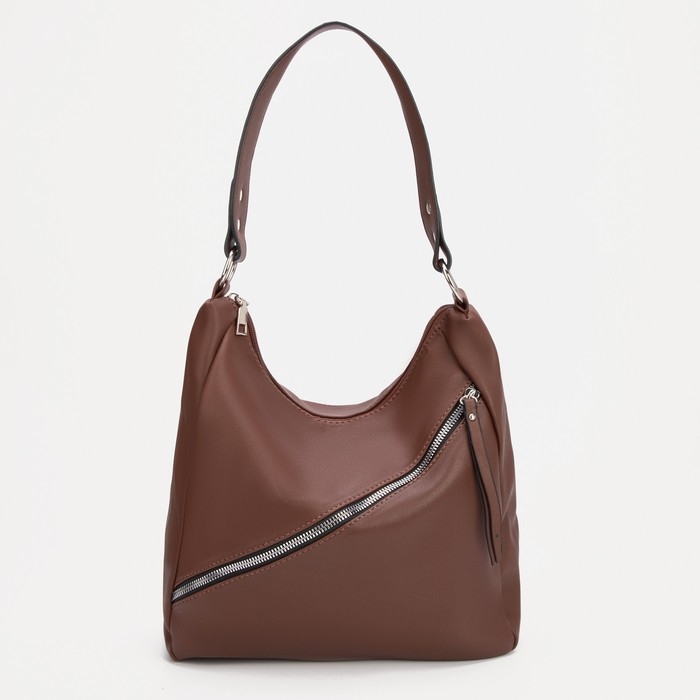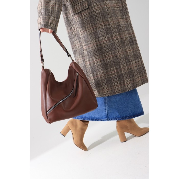 Сумка-хобо, отдел на молнии, наружный карман, цвет рыжий