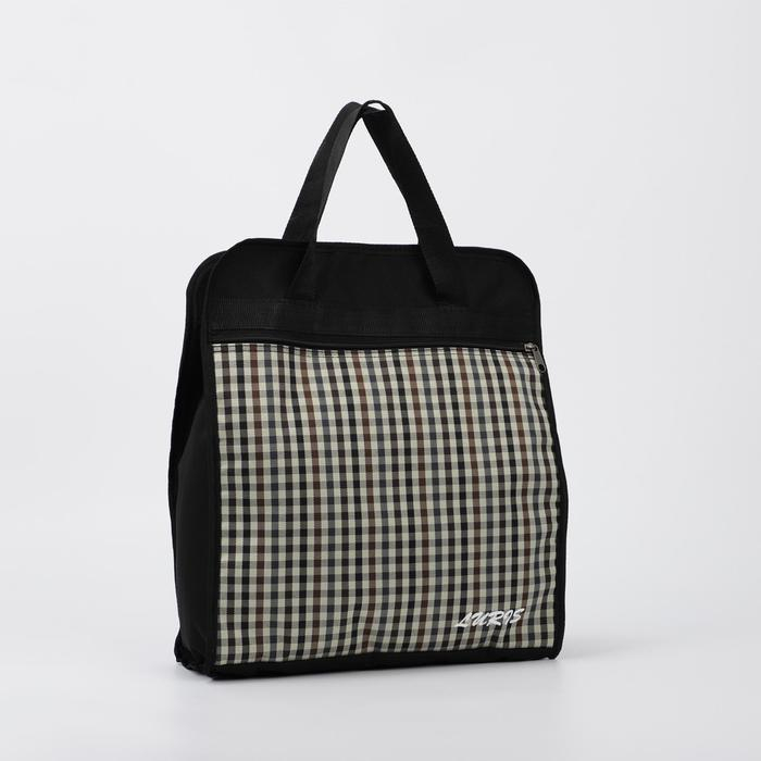 Сумка хозяйственная на молнии, наружный карман, цвет чёрный/бежевый