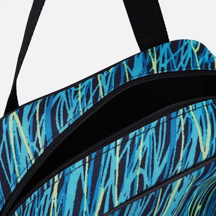 Сумка хозяйственная на молнии, с увеличением, наружный карман, цвет синий/бирюзовый