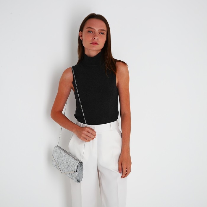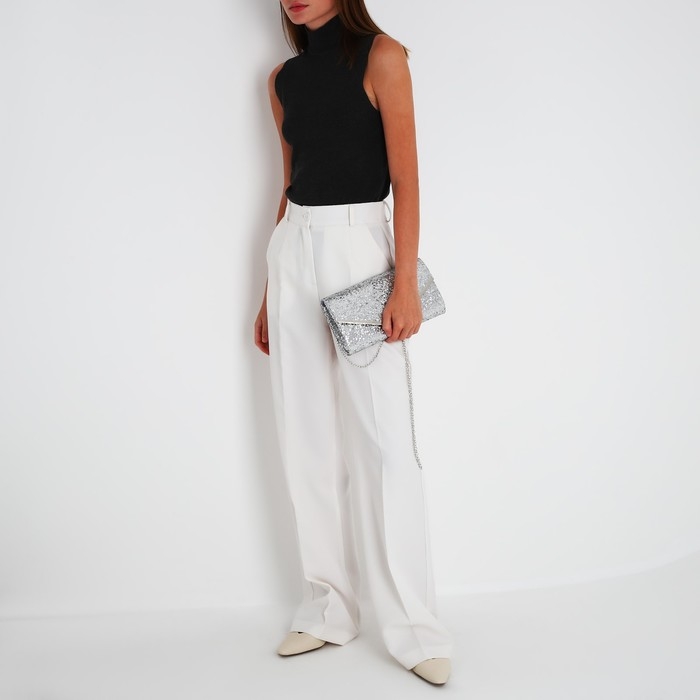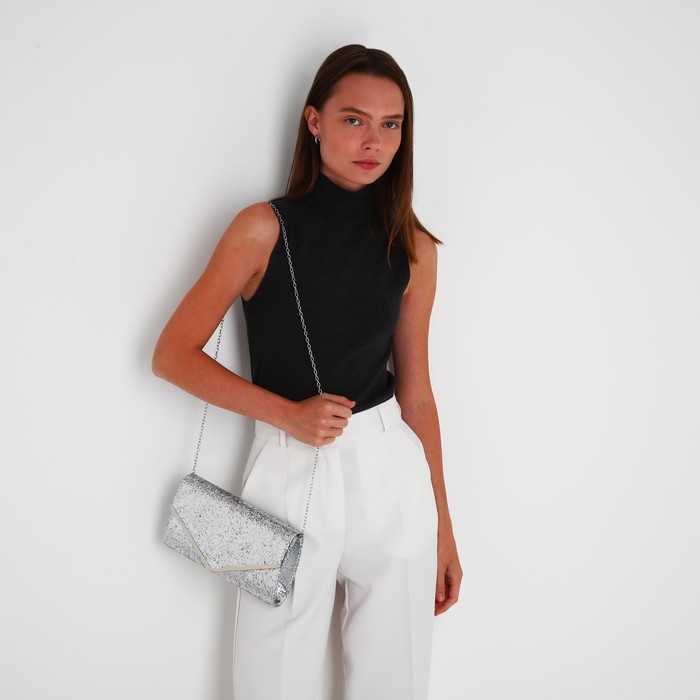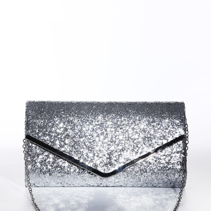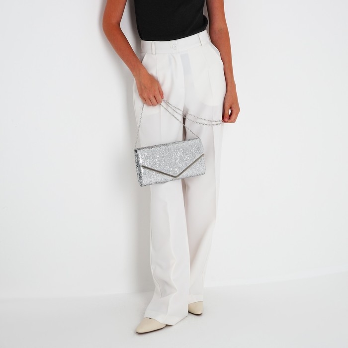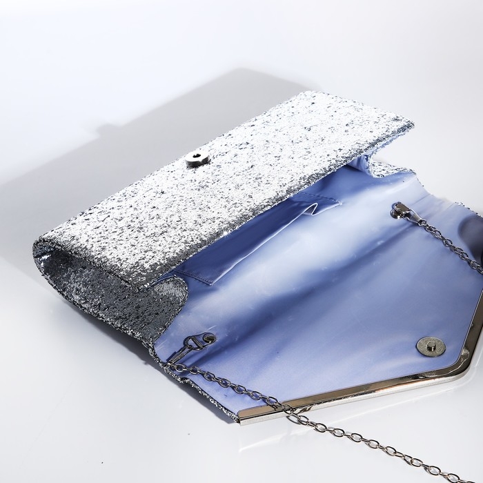 Сумка-клатч на клапане, цвет серебряный