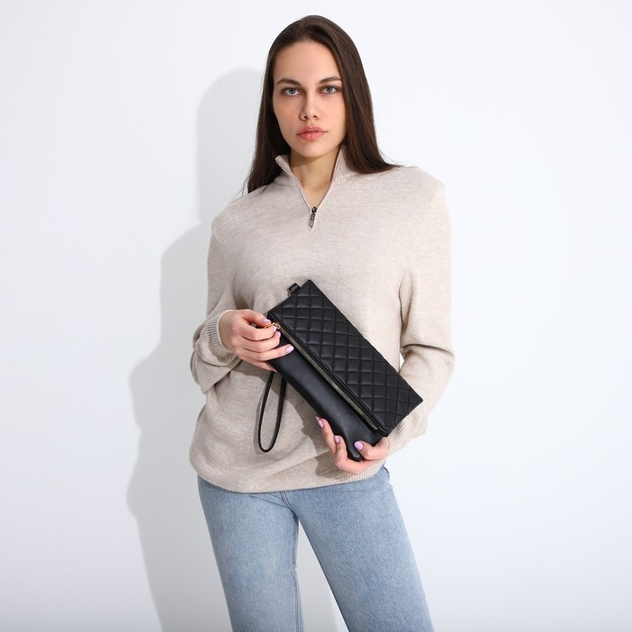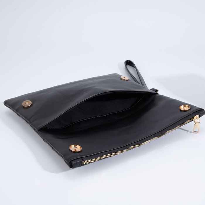 Сумка-клатч на магнитах, ремешок на запястье, цвет чёрный