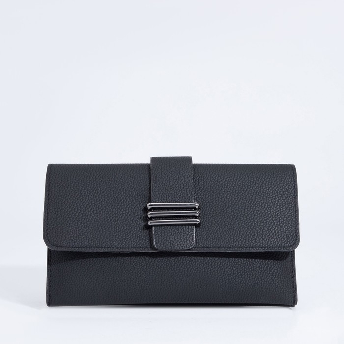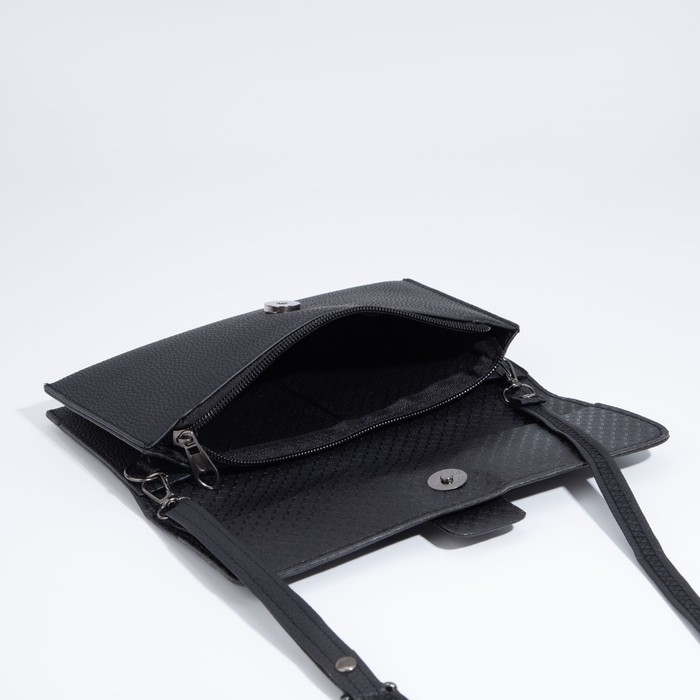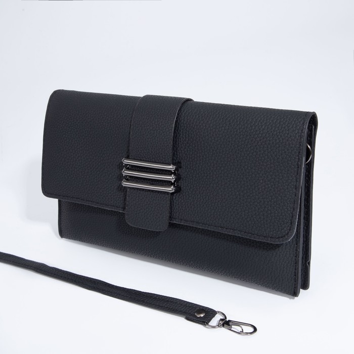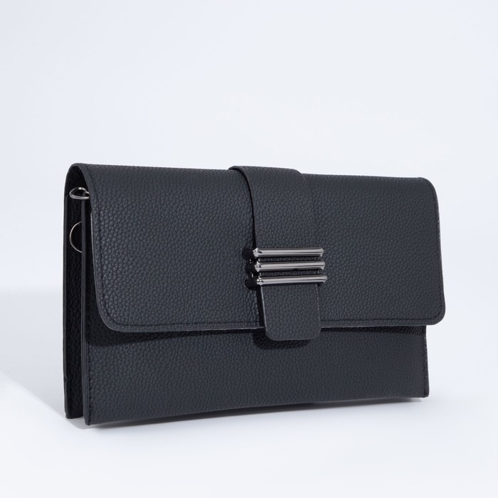 Сумка-клатч на магните, длинный ремень, цвет чёрный