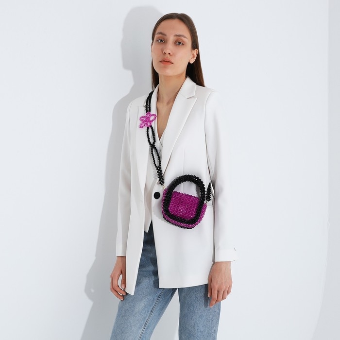 Сумка-клатч на магните, длинный ремень, цвет фиолетовый