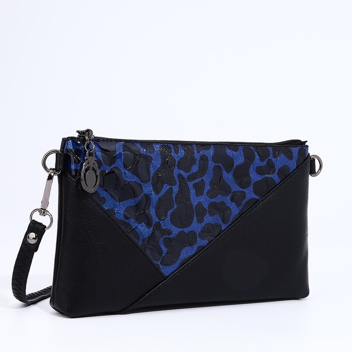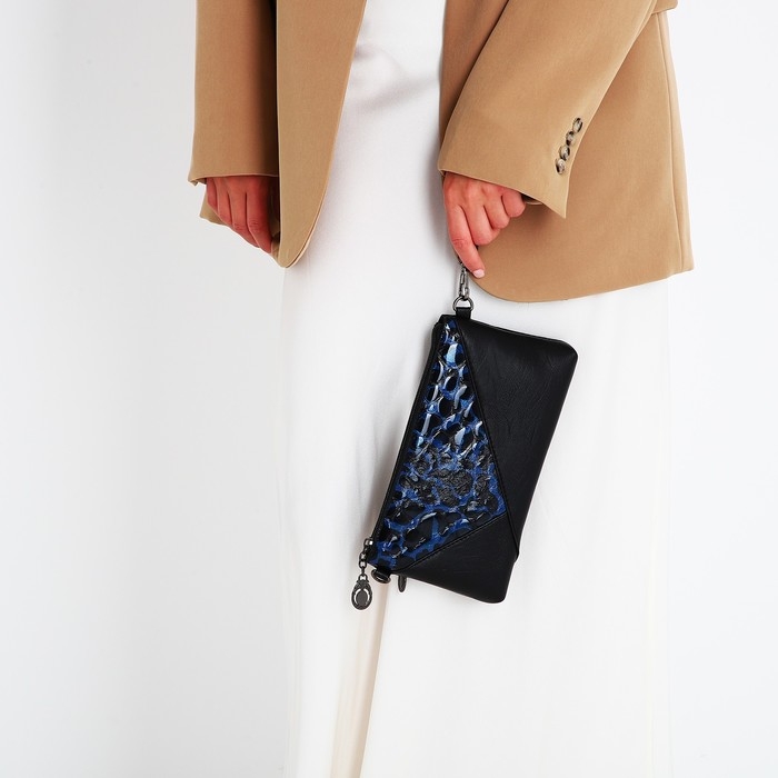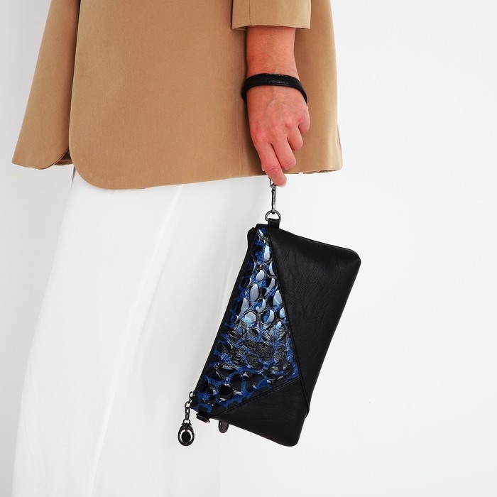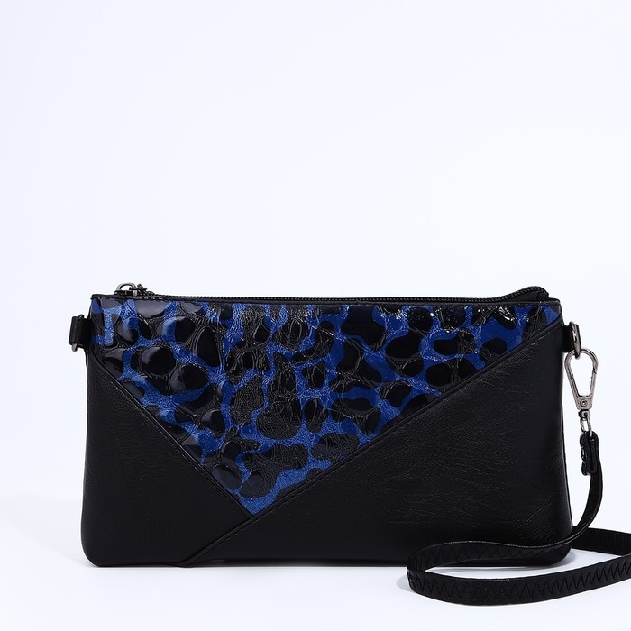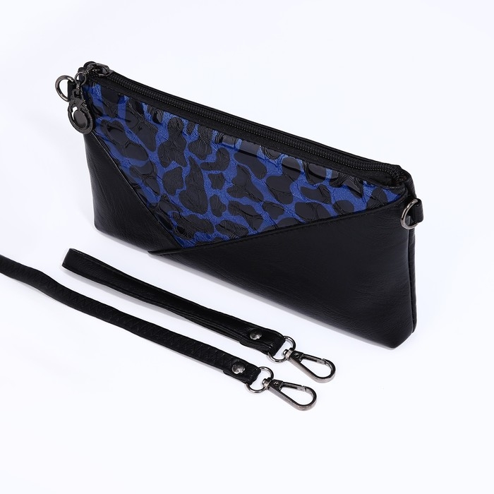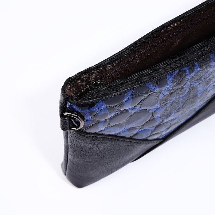 Сумка-клатч на молнии, цвет чёрный/синий