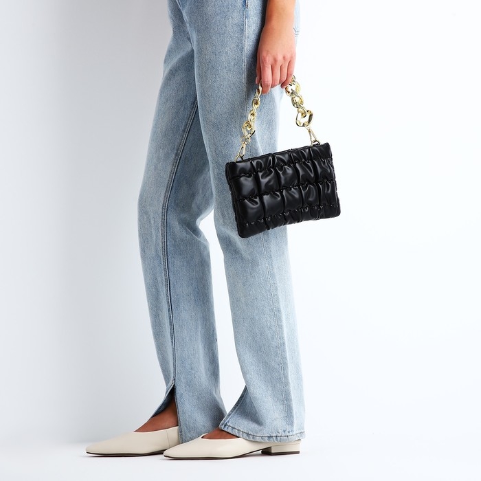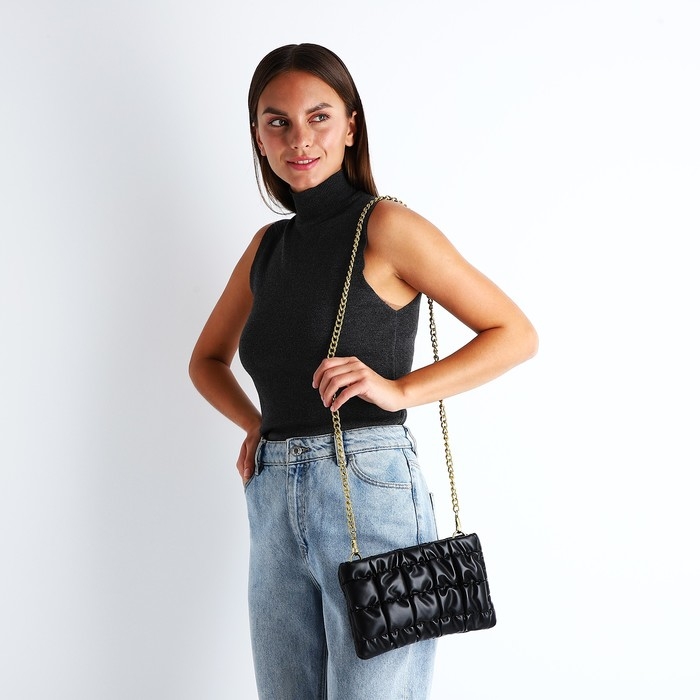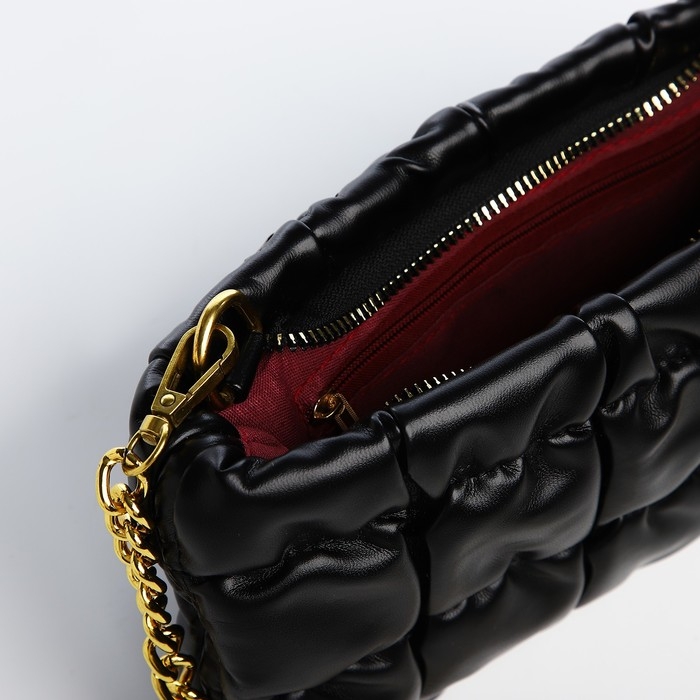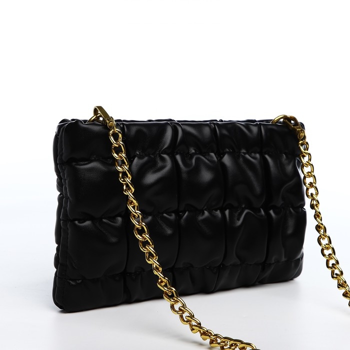 Сумка-клатч на молнии, длинная цепь, цвет чёрный