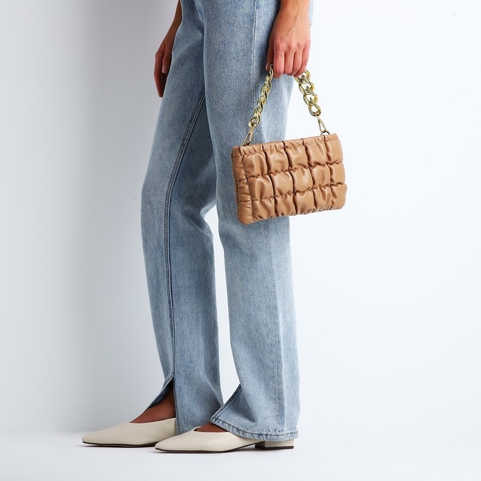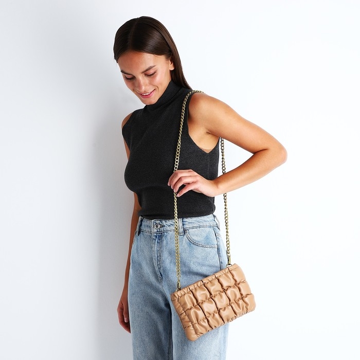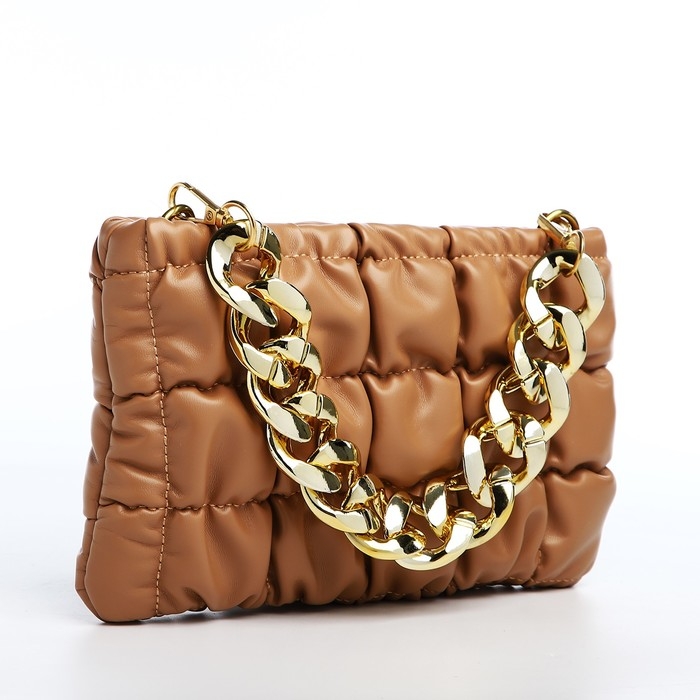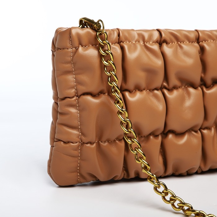 Сумка-клатч на молнии, длинная цепь, цвет коричневый