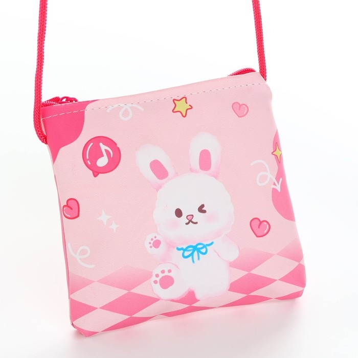 Сумка-кошелёк, детская для девочки через плечо "Милый зайчик", 13х13х2 см