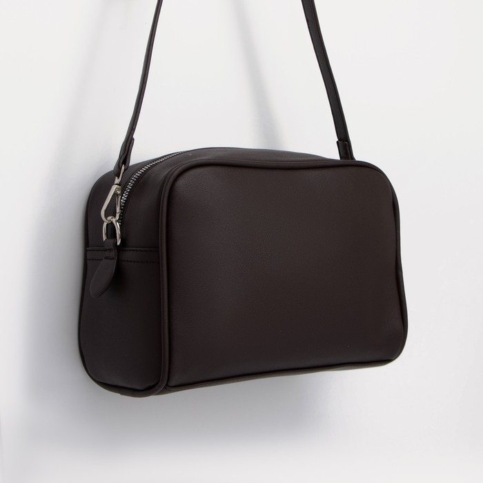 Сумка кросс-боди, отдел на молнии, наружный карман, длинный ремень, цвет тёмно-коричневый