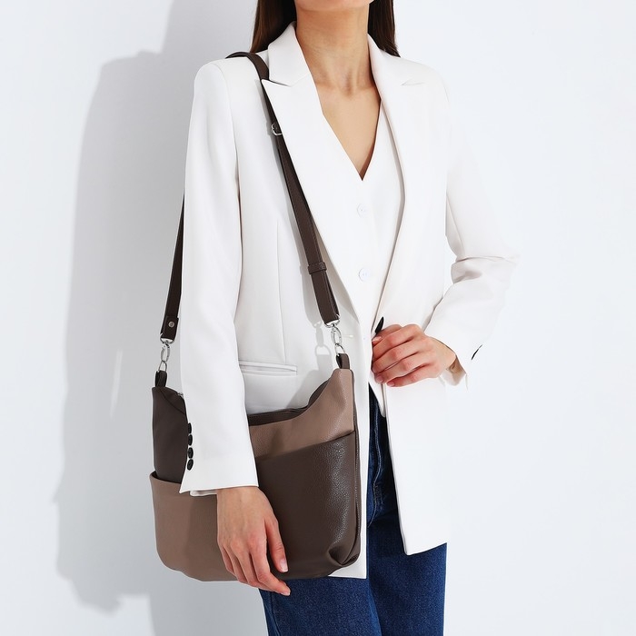 - Актуальный стиль: коричнево-бежевый цвет отлично сочетается с разными нарядами, делая сумку универсальной для любого гардероба.