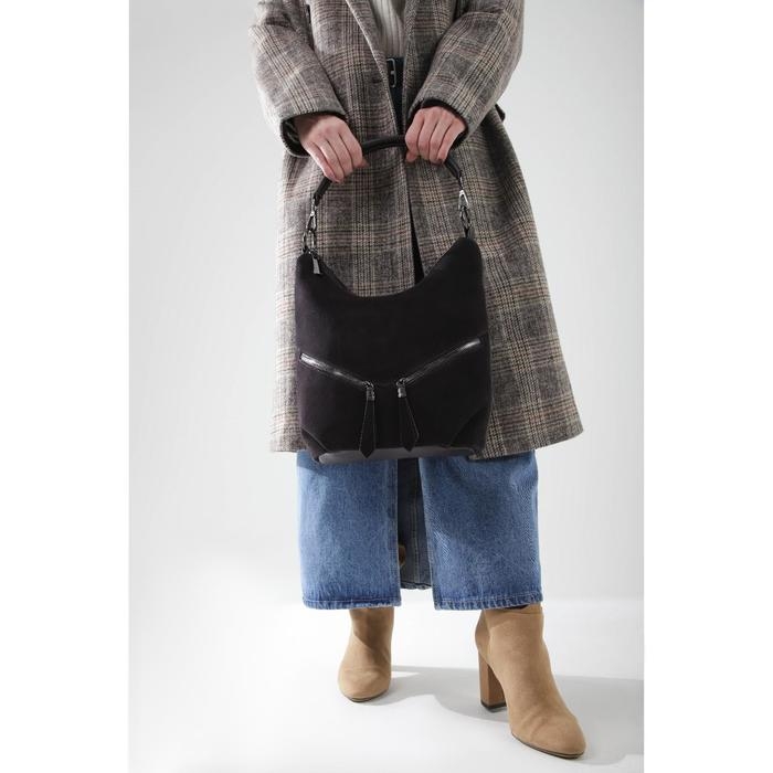 Сумка-мешок, 2 отдела на молниях, 3 наружных кармана, длинный ремень, цвет коричневый