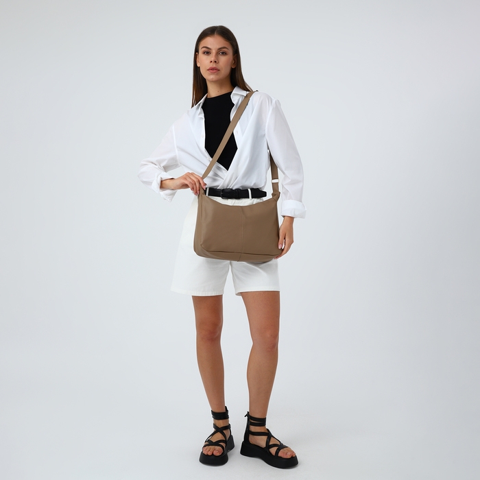 Сумка-мешок на молнии, цвет бежевый