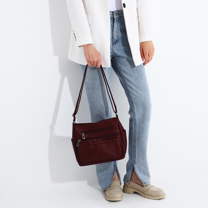 Сумка-мешок на молнии, цвет бордовый