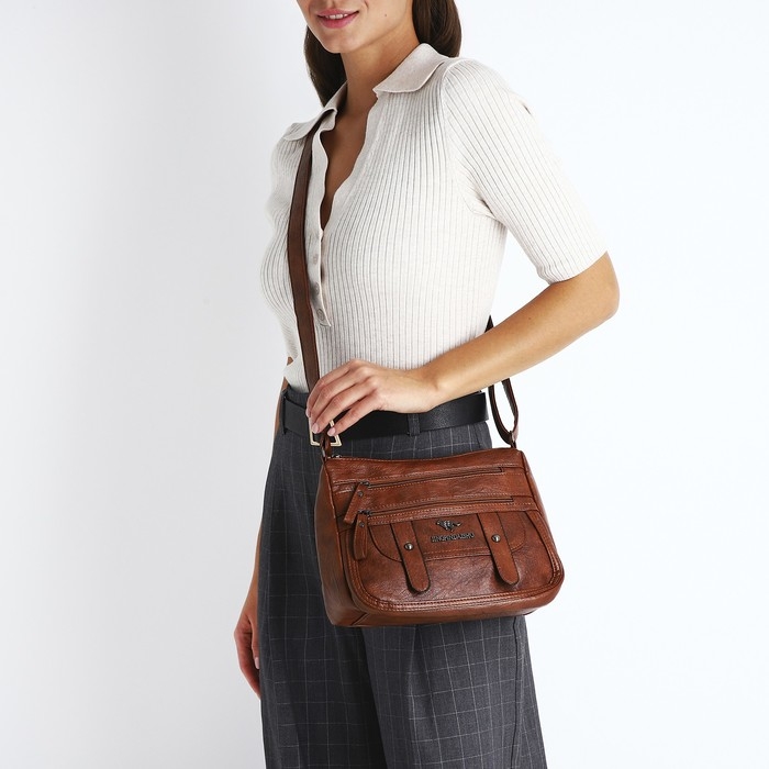 Сумка-мешок на молнии, цвет коричневый
