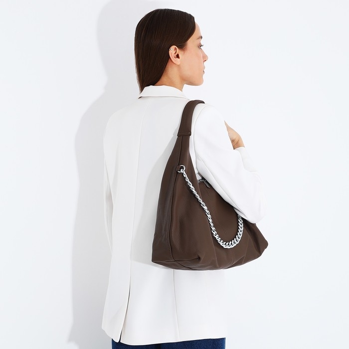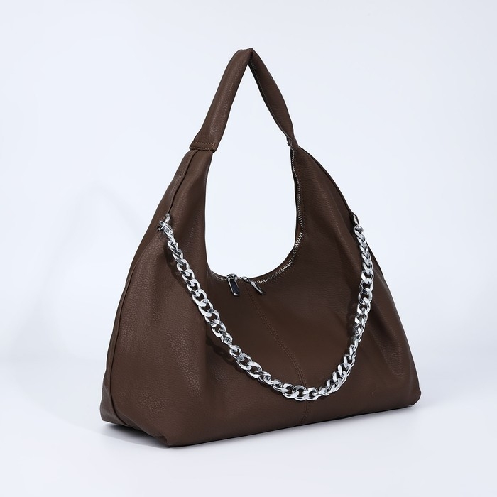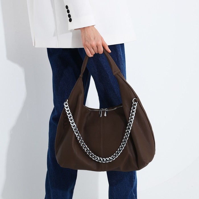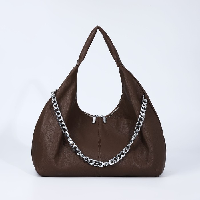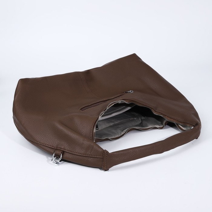 Сумка-мешок на молнии, наружный карман, цвет коричневый