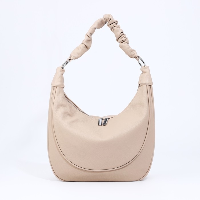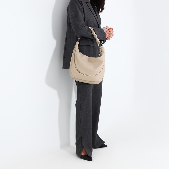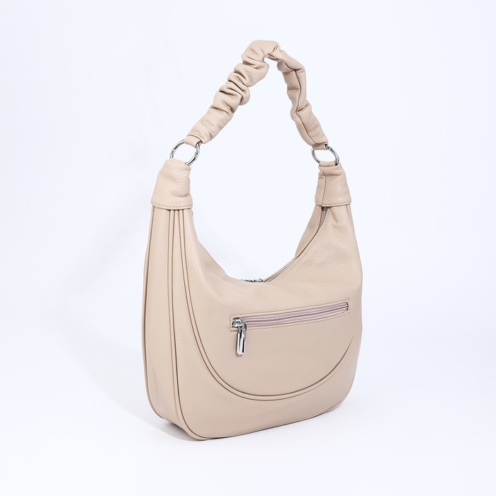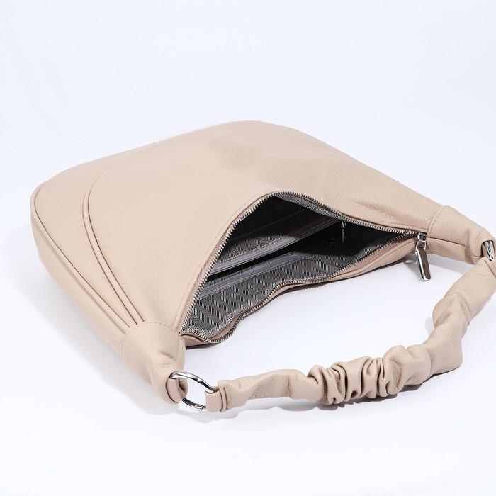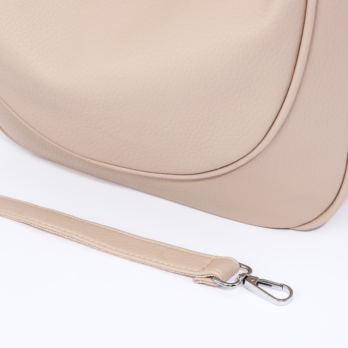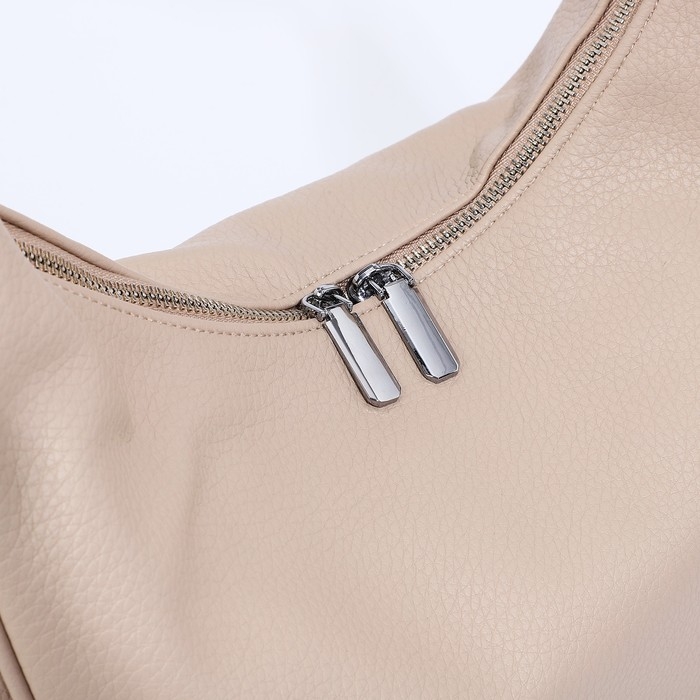 Сумка-мешок на молнии, наружный карман, длинный ремень, цвет бежевый