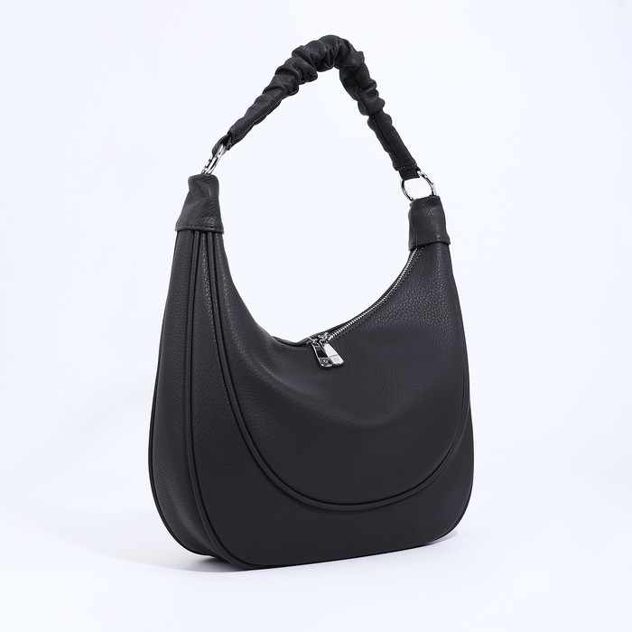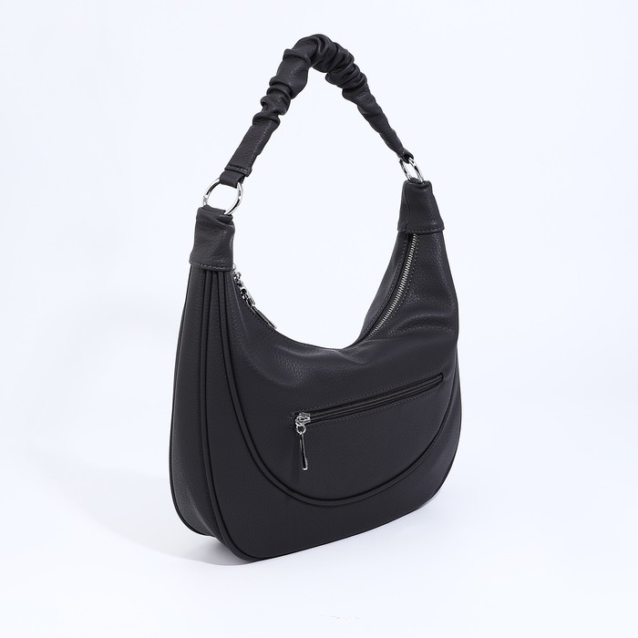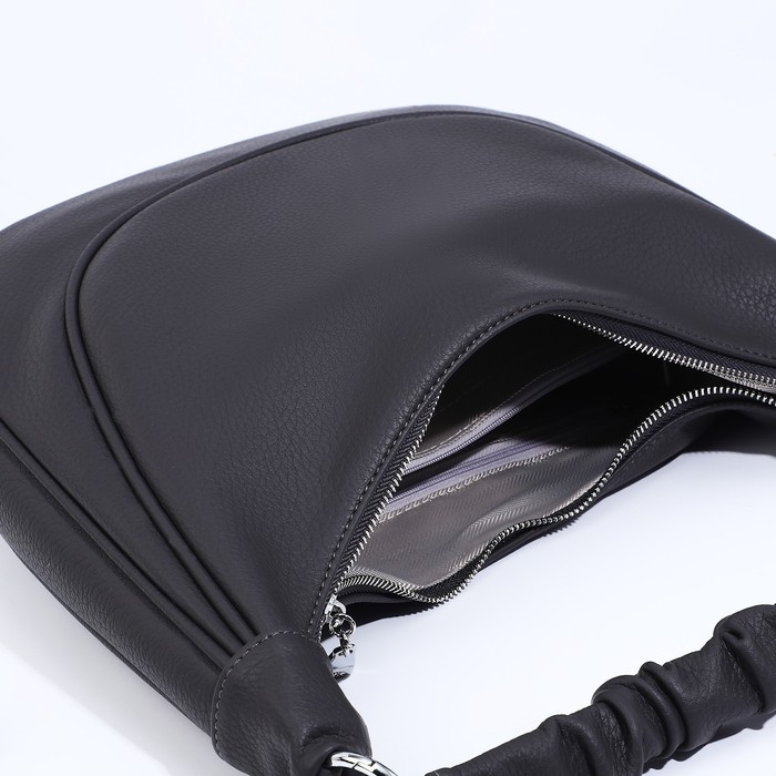 Сумка-мешок на молнии, наружный карман, длинный ремень, цвет тёмно-серый