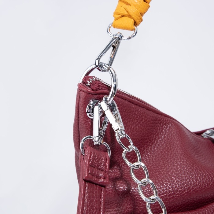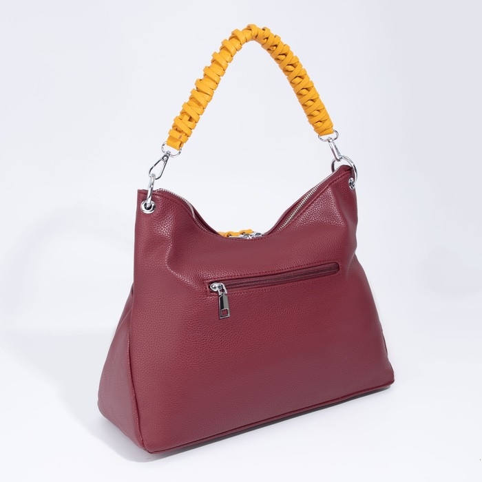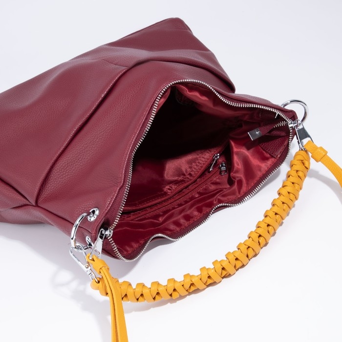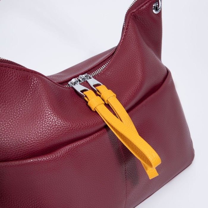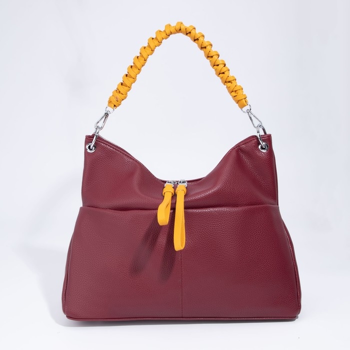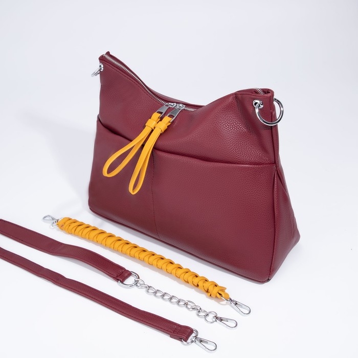Сумка-мешок, отдел на молнии, 3 наружных кармана, длинный ремень, цвет бордовый/жёлтый