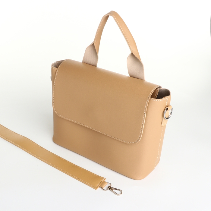 Сумка-мессенджер на клапане, цвет бежевый