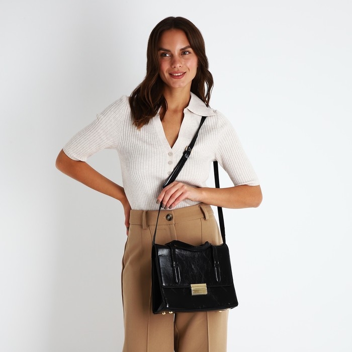 Сумка-мессенджер на клапане, цвет чёрный