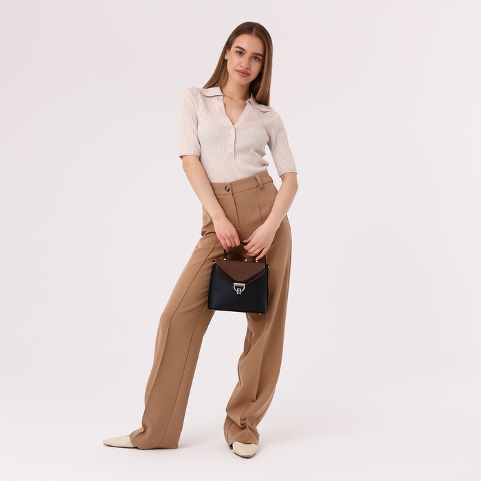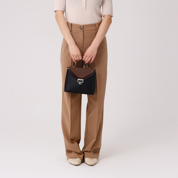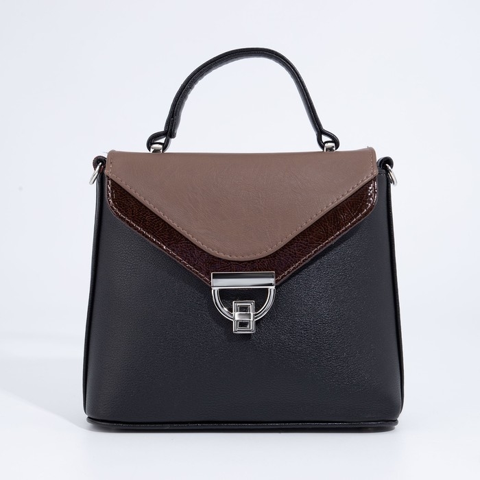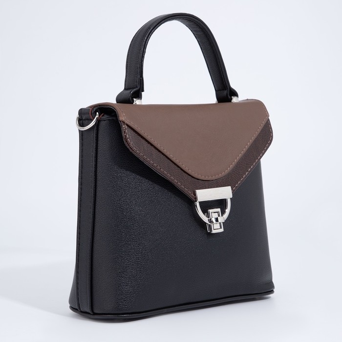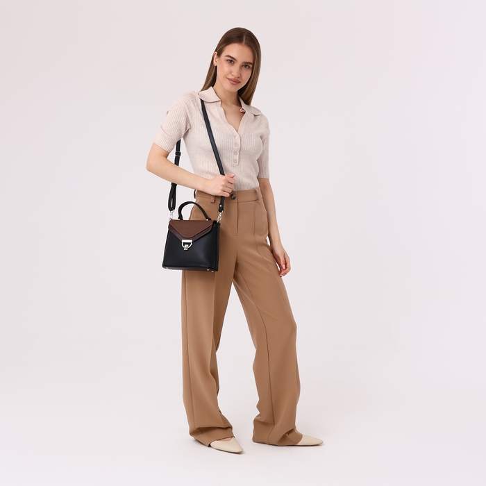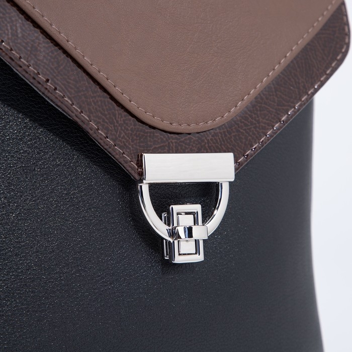Сумка-мессенджер на клапане, цвет чёрный/коричневый