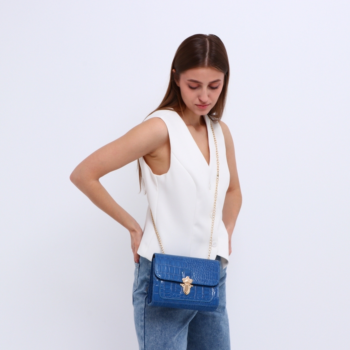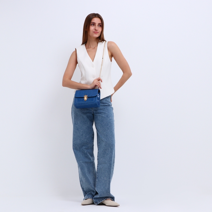 Сумка-мессенджер на клапане, цвет голубой