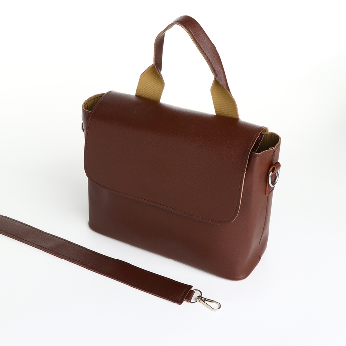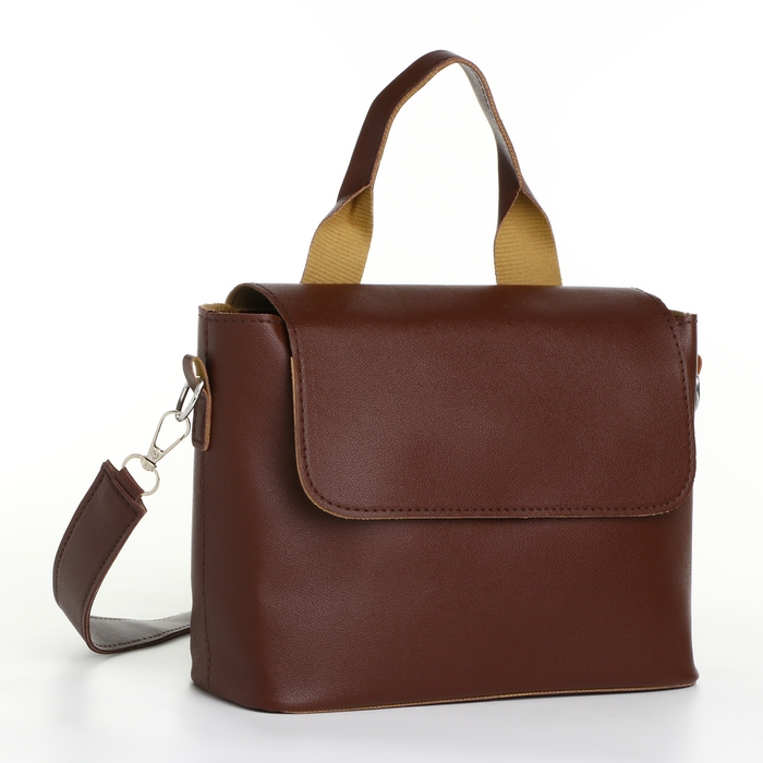 Сумка-мессенджер на клапане, цвет коричневый