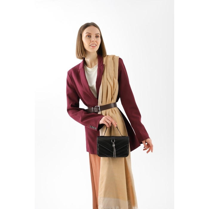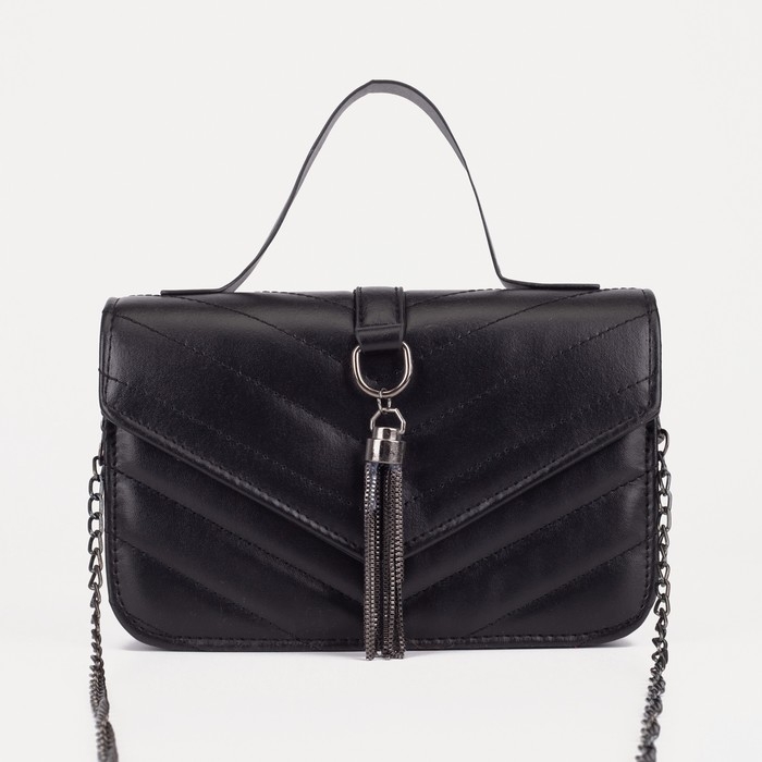 Сумка-мессенджер на клапане, длинная цепь, цвет чёрный