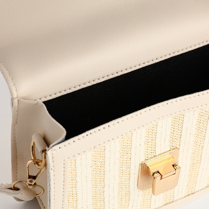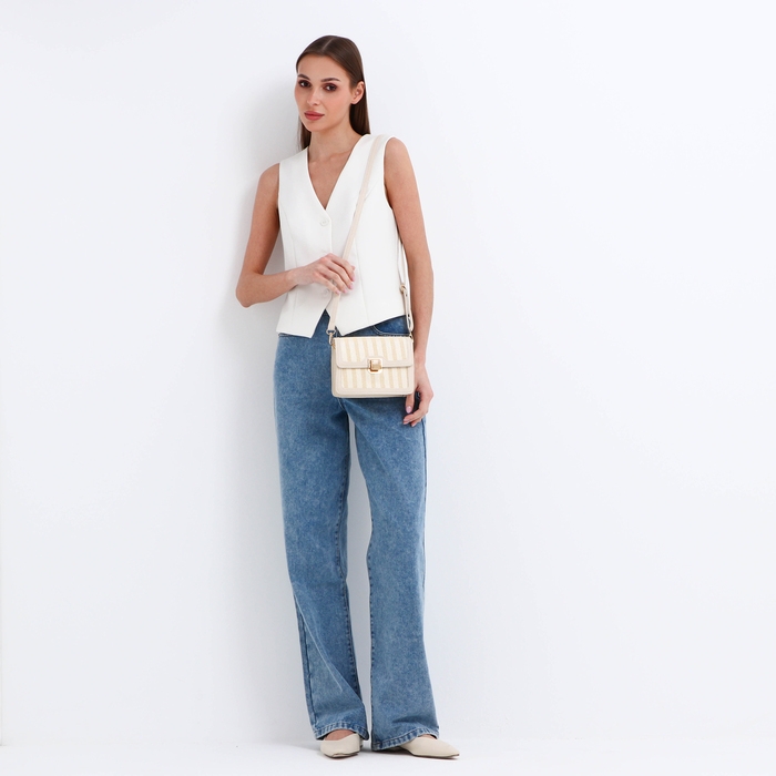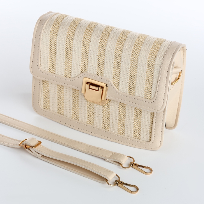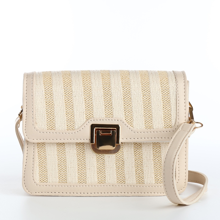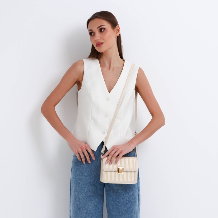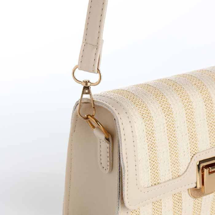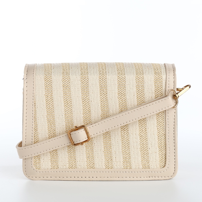 Сумка-мессенджер на клапане, длинный ремень, цвет бежевый