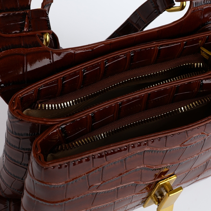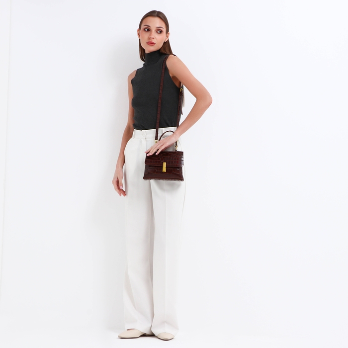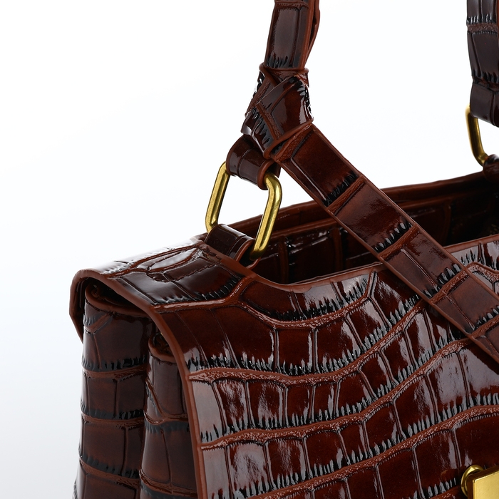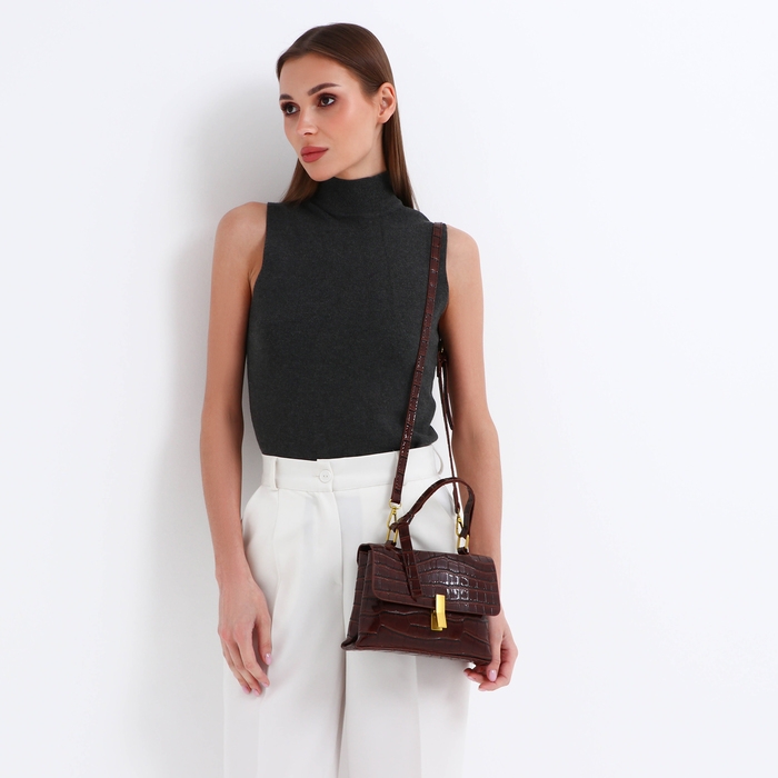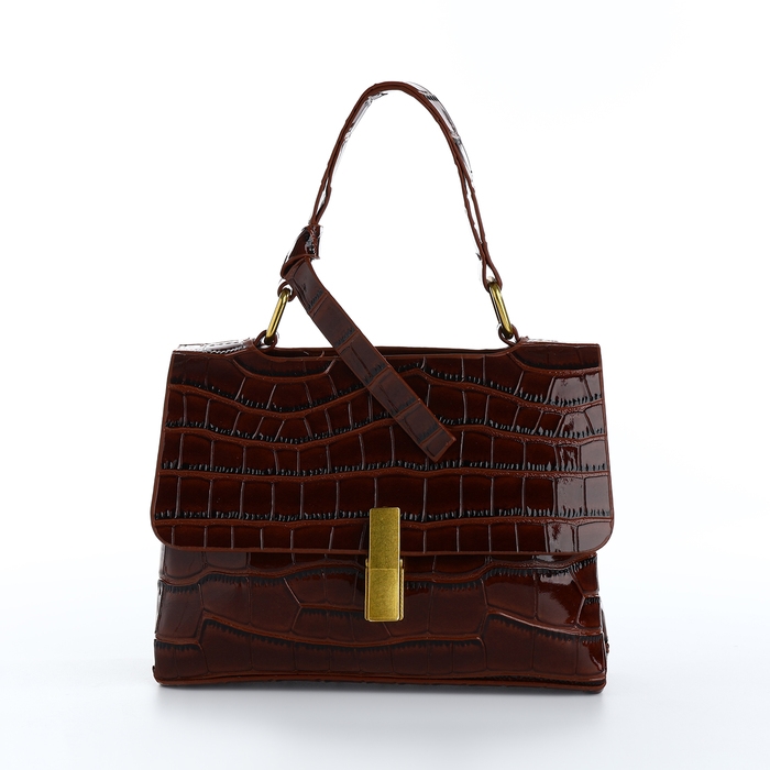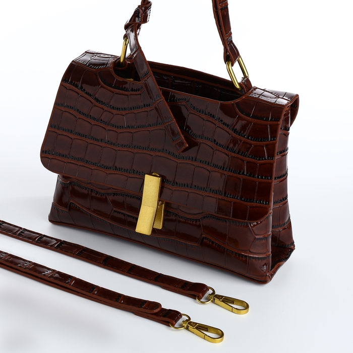 Сумка-мессенджер на клапане, длинный ремень, цвет коричневый