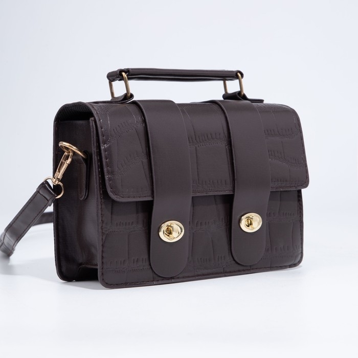 Сумка-мессенджер на клапане, длинный ремень, цвет тёмно-коричневый