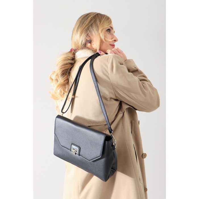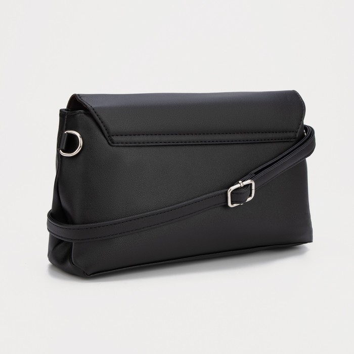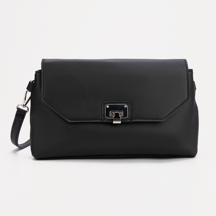 Сумка-мессенджер на клапане, наружный карман, длинный ремень, цвет чёрный