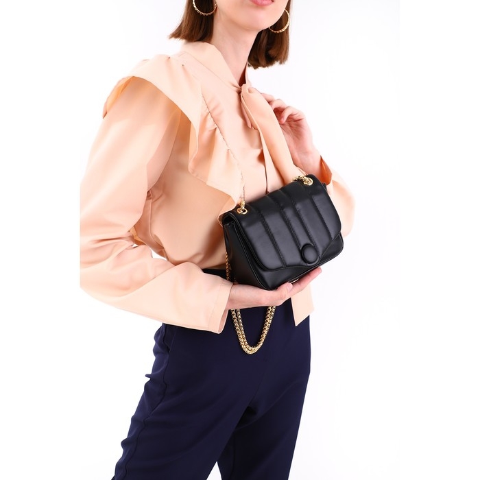 Сумка-мессенджер на магните, длинная цепь, цвет чёрный