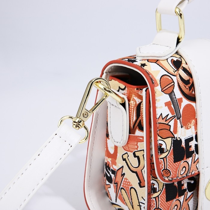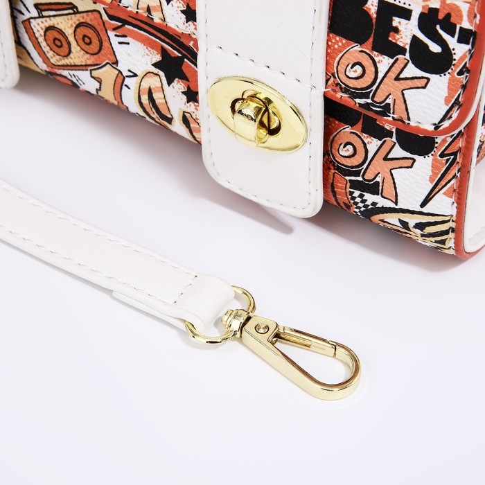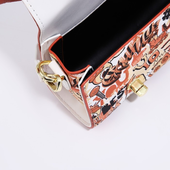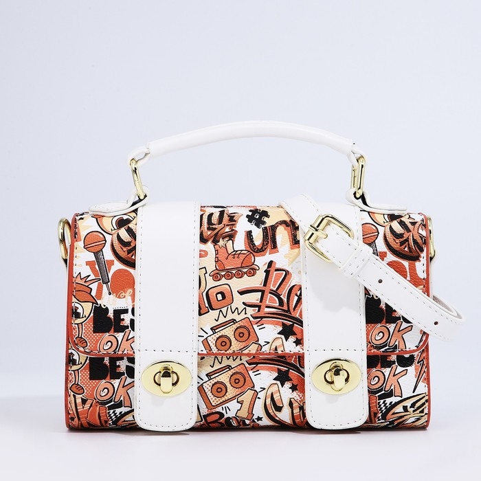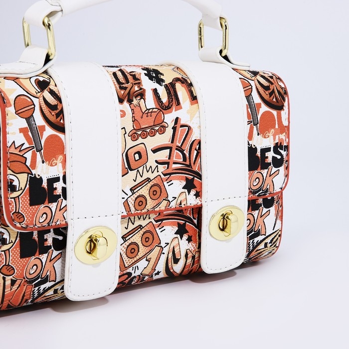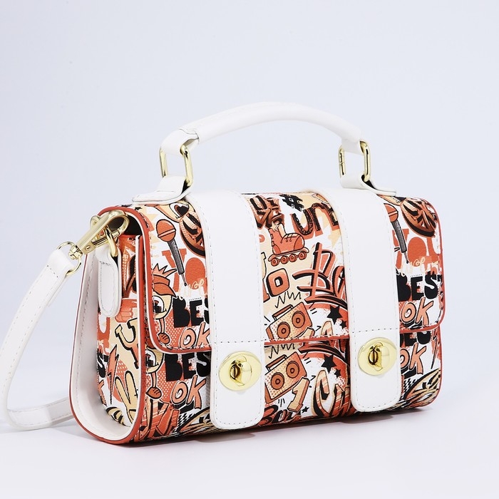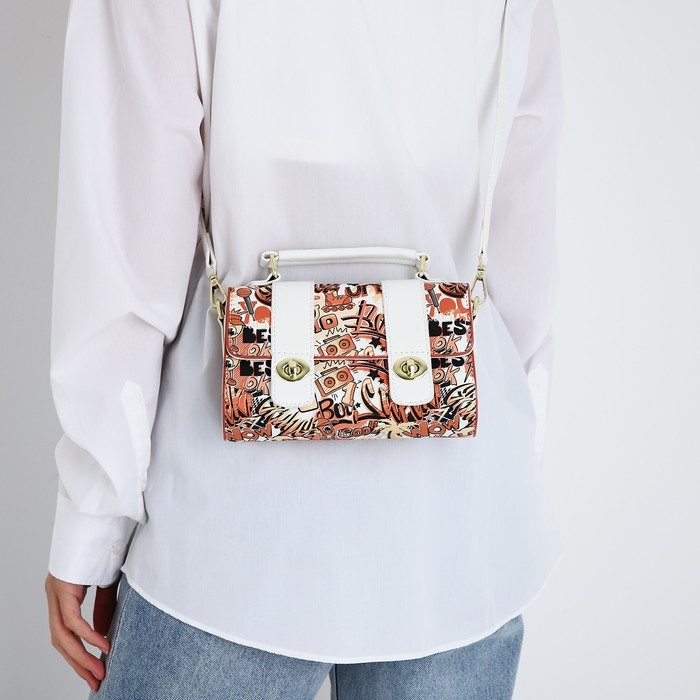 Сумка-мессенджер на застёжке, цвет коричневый/белый