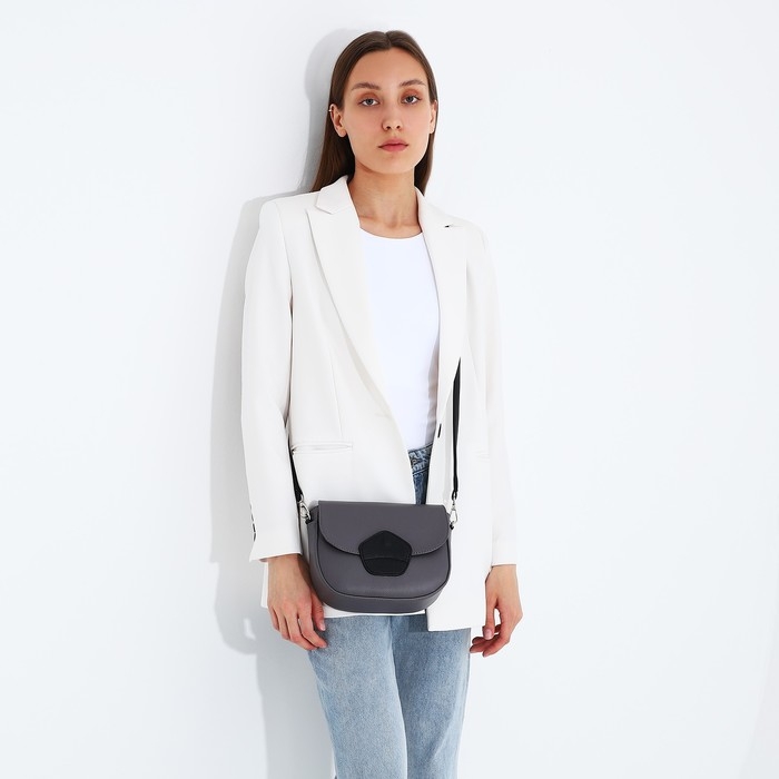 Сумка-мессенджер RICHET на магните, наружный карман, длинный ремень, цвет серый