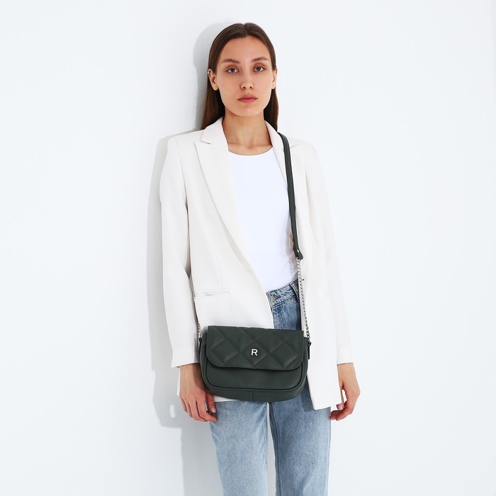 Сумка-мессенджер RICHET на магните, наружный карман, длинный ремень, цвет зелёный