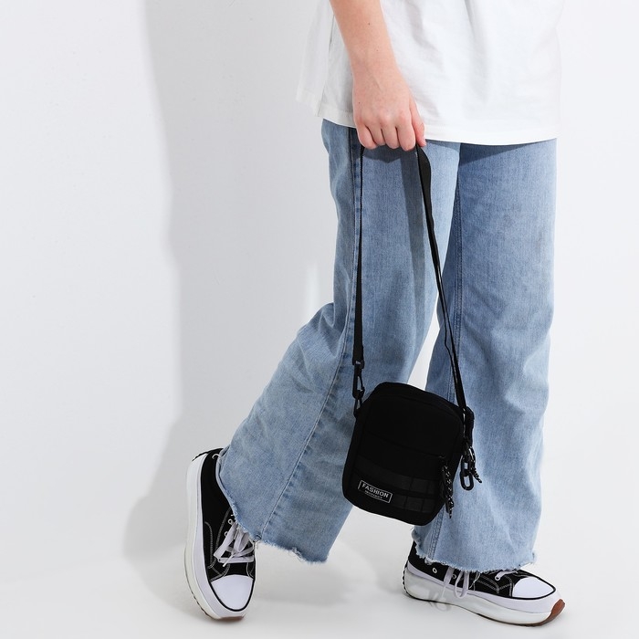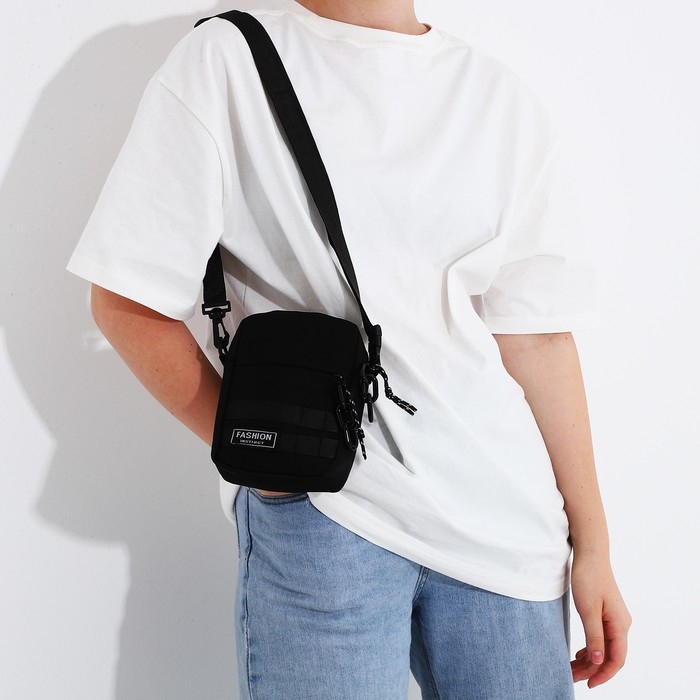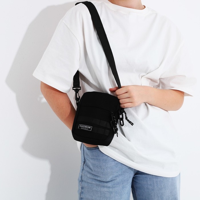 Сумка молодёжная на молнии, 1 наружный карман, цвет чёрный