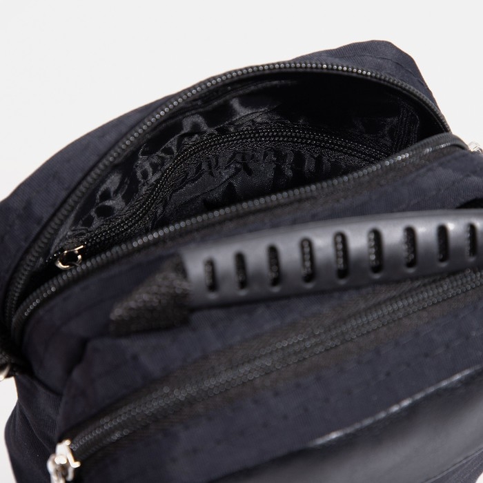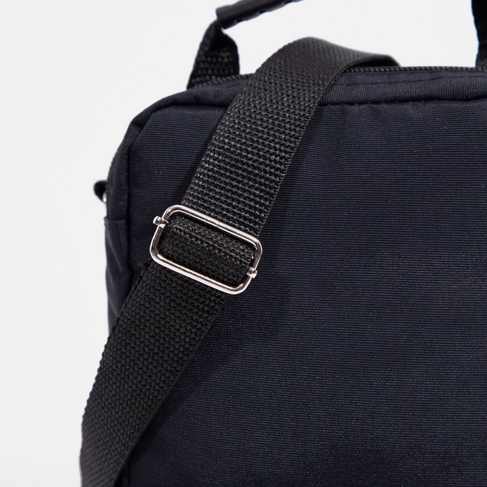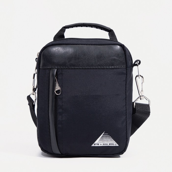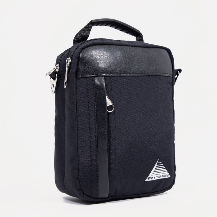 Сумка мужская на молниях RISE, длинный ремень, цвет чёрный