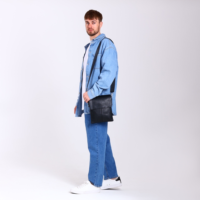 Сумка мужская на молниях Terra Dever, длинный ремень, цвет чёрный