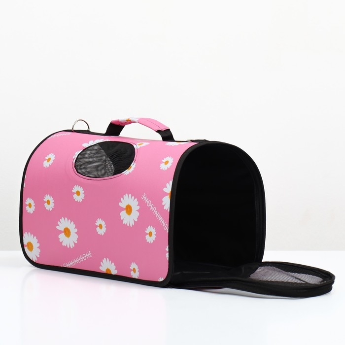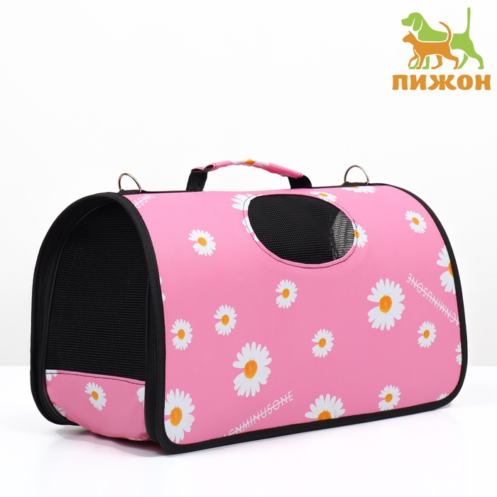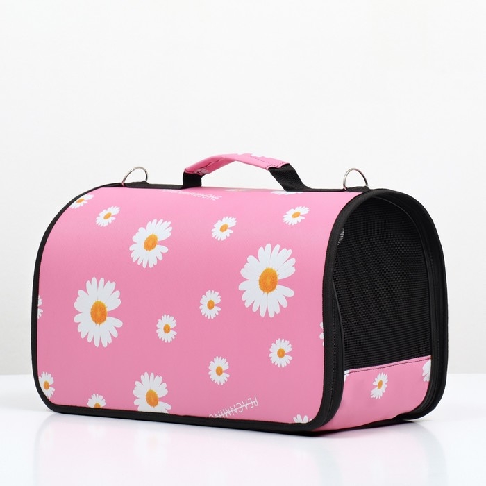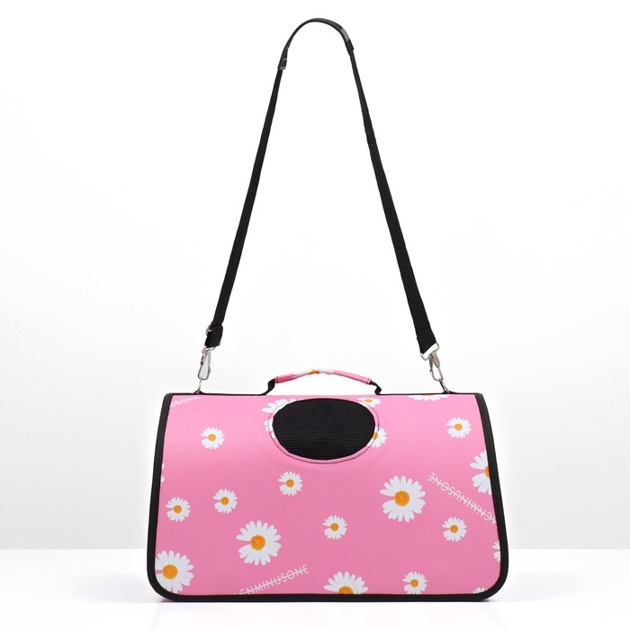 Сумка - переноска для животных "Цветы", розовая, размер L, 53 х 21 х 29 см