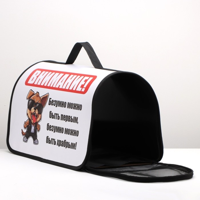 Сумка - переноска для животных каркасная, 50 х 25 х 28 см белая с псом